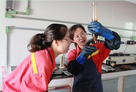 图为员工在检测原油含水率。