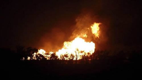 美国俄克拉荷马州西北部一条天然气管道7日发生爆炸,现场火光冲天。