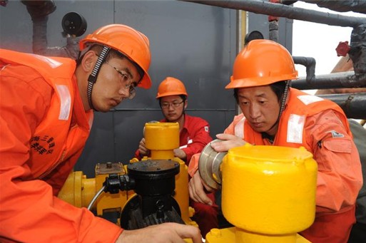 [中国石化新闻网2013-08-11]8月6日,为保证稠油井的正常运行,胜利油田海洋采油厂埕北246A平台的员工们正在调整加药撬块的参数和加药量。为了延长稠油井的寿命和提高生产效率,这个厂根据每口稠油井的特点,优选降粘药剂,摸索加药剂量,制定特护管理措施,将精细管理落实到每一口油井,解决了稠油井负荷重、设备损坏率高的问题,延长了油井免修期。这个平台的埕北246A-3井已连续运行2400余天,累计生产原油6万吨,成为稠油井里的长寿之王。