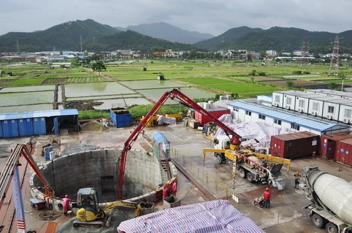 图为南坦海盾构始发竖井井底混凝土浇筑施工场景。宋洋摄影报道