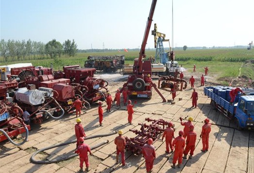 [中国石化新闻网2013-09-04]8月30日,中原油田井下特种作业公司应用水力喷射压裂技术,成功完成悬挂4寸套井文92-3h井两层压裂施工,图为职工正在连接压裂管线设备。这是中原油田首次对4寸套井实施水力喷射两层压裂,该井压裂成功,不仅改写了油田4寸套管内无法分层压裂的历史,同时表明水力喷射技术在4寸套管井分层压裂改造中应用效果良好,弥补了4寸套管井常规分层压裂的不足,对中原油田实现稳产、增产具有重大意义。