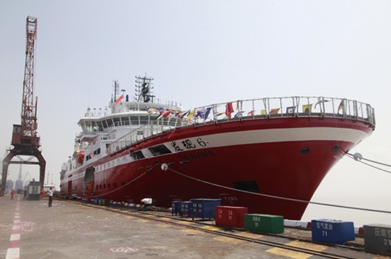 据悉,发现6号采用国际著名动力系统开发商罗尔斯·罗伊斯的设计与设备包,是用于全球I类无限航区范围三维地震采集作业并能对三维采集资料现场处理,具有采集数据高速传输系统的专用地球物理勘探工作船,配备直升机平台。该船长100.10米,型宽24米,主机功率4000千瓦×2,总吨10882,航速可达16节,可拖带12根8000米地震采集电缆(相邻电缆间距100米)和双震源共7排气枪阵列。
