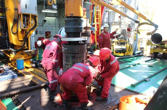 11月2日12点30分,甲方总监陈德一声令下,司钻王云龙启动现代化的钻机,隔水导管开始由慢到快地旋转,拉开了HCML(哈斯基-中海油马杜拉有限公司)在印尼Madura海域MBF-1探井钻井作业的序幕。