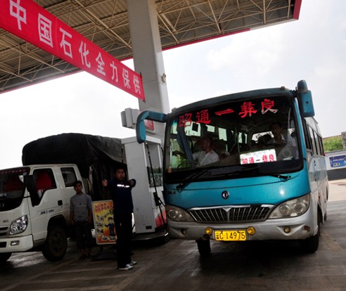 云南昭通龙泉加油站为公交集团客车供油,保证客车及时赶赴灾区救援。