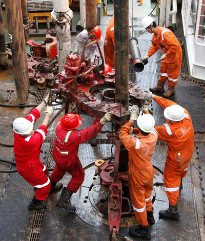 勘探六号钻井平台自2011年7月投产以来,一直从事探井作业,今年9月份按照部署开始生产井钻完井作业。
