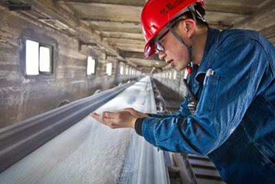 图为宁夏石化化肥一厂员工严格筛选化肥。金添刘志红摄