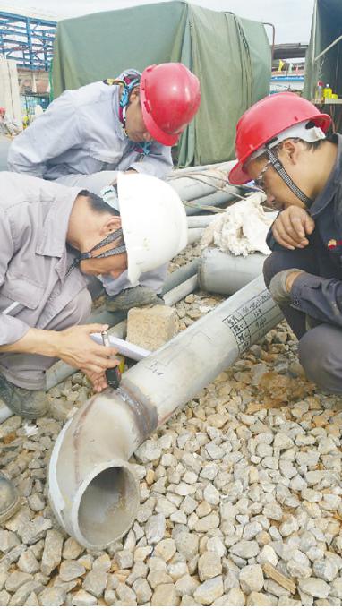 截至7月27日,硫黄回收联合装置与加氢联合装置已处理完焊口2.6万道,余下2.3万道焊口正在紧张的施工中。