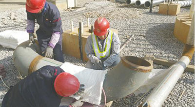 作业人员为焊口敷设保温棉准备进行焊后热处理。张超摄