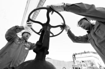 5月24日10时12分,胜利油田河东线改造工程全线贯通。该工程历时两年施工建设,全程31.36公里,设计年输油量为300万吨。此次投产的是河东输油线更新工程二期工程,线路长11.85公里。一期工程全程19.51公里,已于2016年6月16日正式投产。图为现场工作人员缓缓开启河东线集贤阀组闸门。