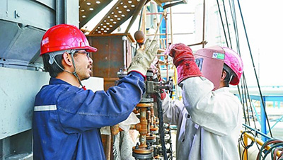 图为抚顺石化施工人员进行管线预制。赵钰赵彦摄