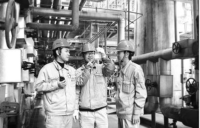高桥石化抓住高附加值白油产品这一效益增长点,在做大产量上做文章,1~11月,共计生产工业白油14.22万吨,同比增长6.29%,再创历史新高。与此同时,高桥石化在7月7日成功试产出50号化妆品级白油的基础上积极调整相关工艺参数,截至11月共生产9207吨50号化妆品级白油,增效成果显著。图为技术人员在现场。