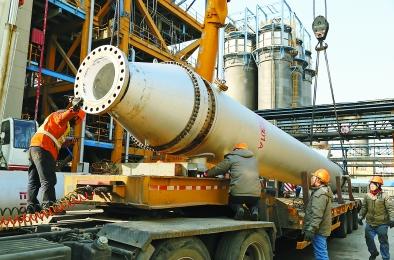 齐鲁石化塑料厂在开展“降成本增效益”活动中,定期对重点设备和关键零部件的使用寿命和运行状况进行评估统计,对设备实施预防性维修,保证了装置安稳运行,有效降低了生产成本。今年,仅对高密度聚乙烯装置输料系统球阀、挤压机螺杆、循环气冷却器修复一项,就为企业节约修理费用100余万元。图为该厂在装置现场安装循环气冷却嚣。