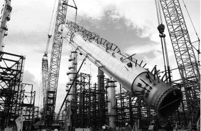 6月17日,经过四建公司海南炼化项目部科学施工、密切配合,海南炼化二套芳烃C-604成品塔安全平稳就位。目前,抵达现场的二套芳烃其他设备安装正在紧锣密鼓进行。图为海南炼化二套芳烃成品塔施工现场。