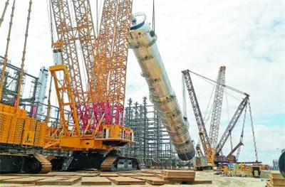 海南炼化芳烃项目千余吨“擎天柱”吊装就位(图)