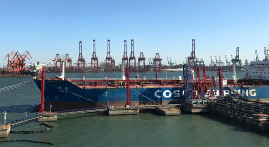 中国石化新闻网讯由“千池”号油轮装载的天津石化30000吨汽油,今年首船且首次出口日本。为确保油轮按时装载,天津石化密切加强与天津港、海关等部门的联系,在全力做好防疫工作的同时,及时将出口汽油输往库区并进行油轮装载。据悉,油轮将在21日离开码头驶往日本。图为油轮正在进行汽油装载作业。董波摄影报道