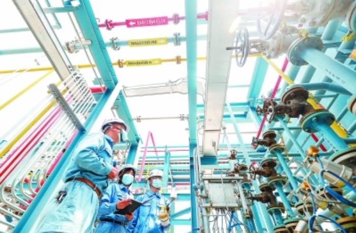 作为北京冬奥会氢气新能源保供项目,燕山石化氢气新能源装置今年以来实现安全平稳连续生产,电池氢产品逐步实现量产,并稳定供应北京市场。截至目前,燕山石化电池氢产品已服务下游客户7家,累计供应超27.5吨。图为5月12日,装置操作人员在现场检查程控阀开关状态,为装置检修后开车作准备。