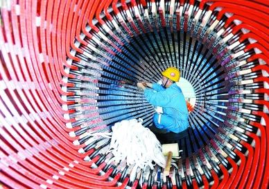 近日,金陵石化热电部3号汽轮发电机组大修改造启动。此次大修改造是金陵石化2021年重点项目之一,工期为3个月。他们严格落实各项安全措施和应急预案,合理安排大修改造计划,在严抓直接作业环节安全的基础上确保施工进度,全力以赴推动大修改造有序进行。图为施工人员正在安装电机定子棒。徐捷桂许重摄影报道