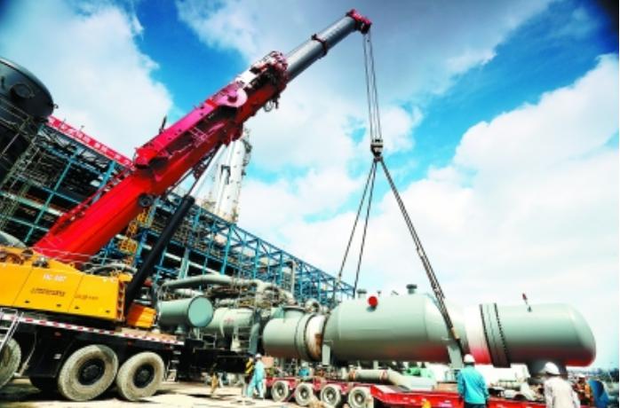 近日,镇海基地加快推进乙烯项目建设,全力以赴冲刺“决胜6·30”目标。作为镇海基地主装置之一,截至目前,该项目钢结构安装完成96.7%、工艺管道安装完成62.6%、设备安装完成87.3%。图为乙烯干燥激冷器吊装现场。陈卫民华赟摄影报道