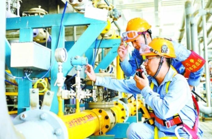 7月21日,炼化工程集团宁波工程公司EPC总承包的镇海基地项目动力中心3号锅炉高温烘炉一次点火成功,为镇海基地项目全面开展吹扫奠定了基础,标志着整个项目进入生产试车新阶段。该项目于2020年3月30日开工建设,历时14个月,建设过程克服了疫情、高温、多雨等困难,创造了中国石化同类项目执行纪录。图为操作人员检查前燃气进气气压。本报记者张见明摄