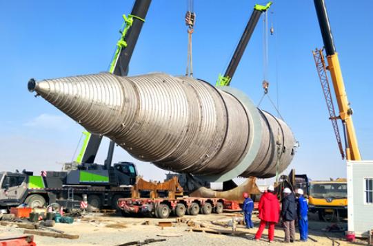 2021年1月26日,高密度聚乙烯装置粉料净化罐运至现场,准备安装。