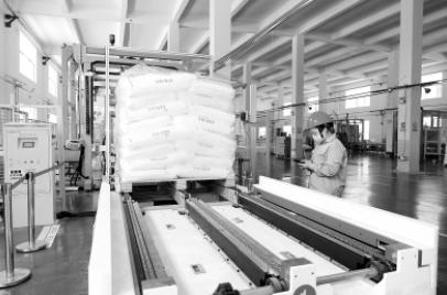 今年以来,巴陵石化加快科研成果转化,推进新产品工业化生产,1月至8月累计产销合成橡胶新产品两万吨,同比增加1.2万吨,成为新的效益增长点。图为技术人员在SEBS产品生产线,使用遥控器导引运输车装载新下线的橡胶产品。
