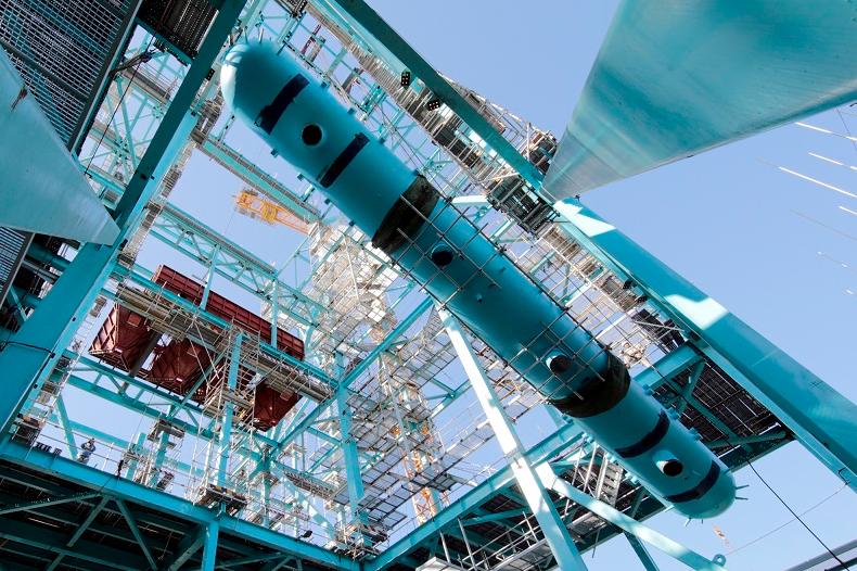 此前的11月25日,项目部通过一台最大总起重量为400吨履带式吊车,将两根大板梁顺利吊装到钢结构上,在青岛安工院的指导下完成安全条件确认专项检查,为本次汽包吊装就位做好准备。锅炉汽包安装就位,为全面推进锅炉系统设备安装作业奠定了坚实基础。