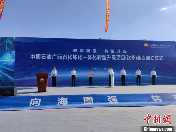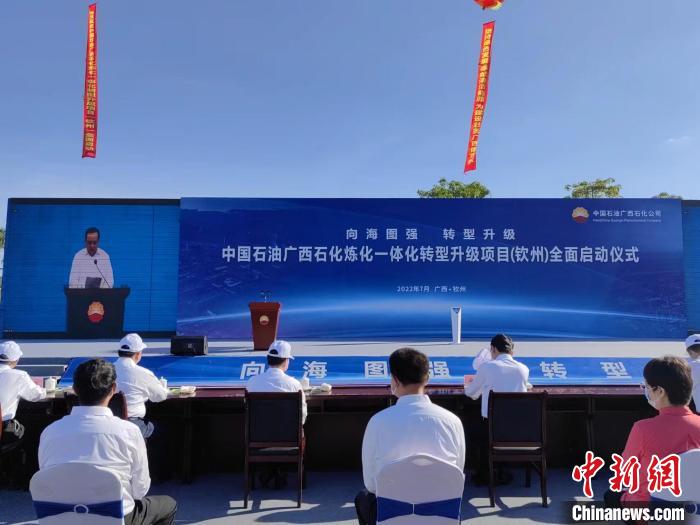 中新网钦州7月28日电(记者杨强)中共广西壮族自治区委员会书记刘宁、中国石油天然气集团有限公司董事长戴厚良,7月28日分别在广西钦州主会场和北京会场共同触摸启动柱,标志着中国石油广西石化炼化一体化转型升级项目全面启动。中国石油广西石化炼化一体化转型升级项目是国家石化产业规划布局重大项目,也是中国石油推动“减油增化”调结构的战略性项目,已列入2022年广西壮族自治区重点推进十大工业项目、自治区“双百双新”重大产业项目。项目位于广西自贸试验区钦州港片区石化产业园,总投资约305亿元(人民币,下同),计划2025年全面建成投产,投产后预计年产值300亿元、税收30亿元。