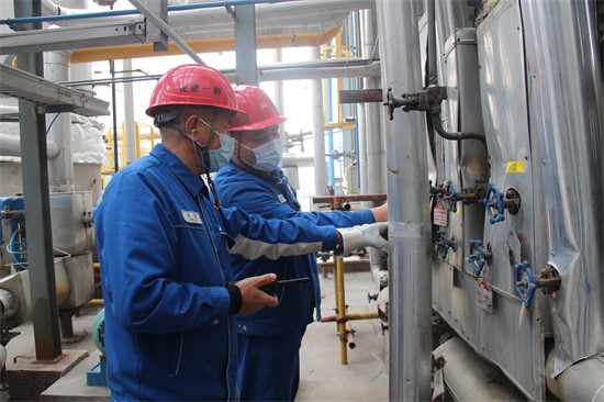 员工正在对装置进行防冻检查,为冬季安全生产提供保障。于明玉 摄