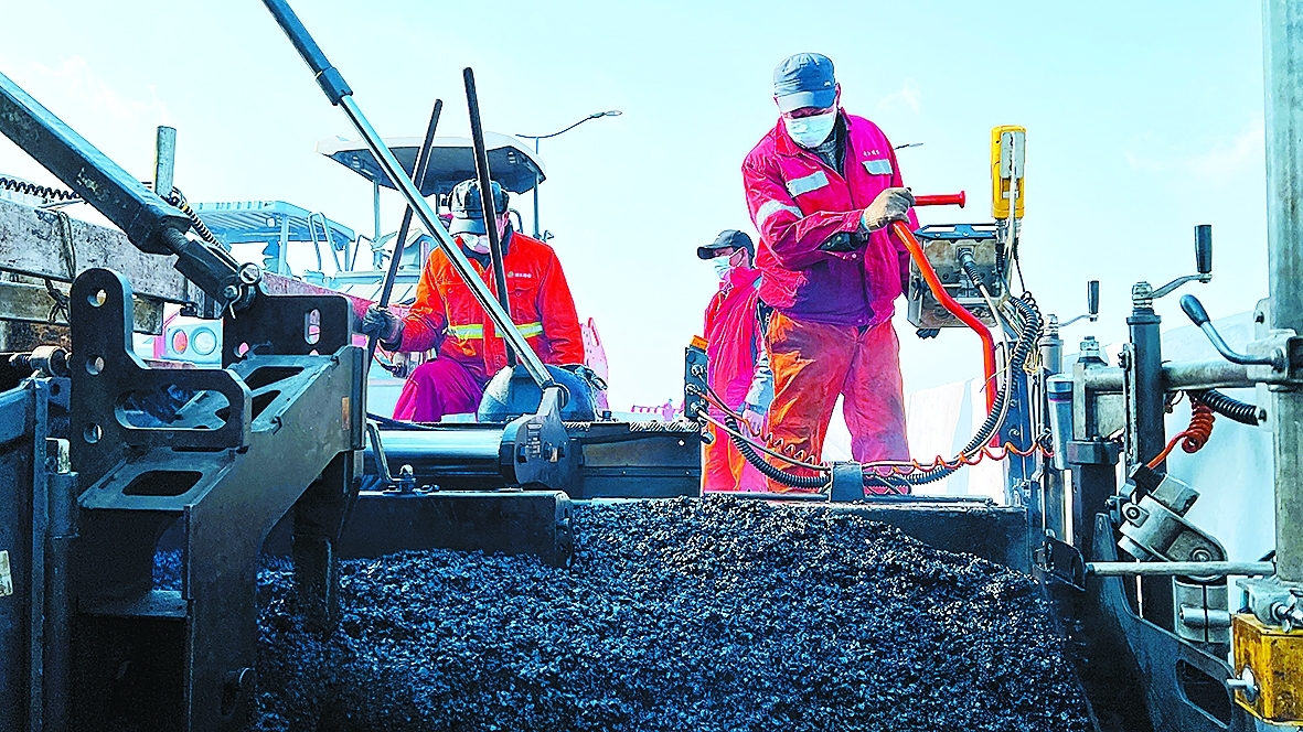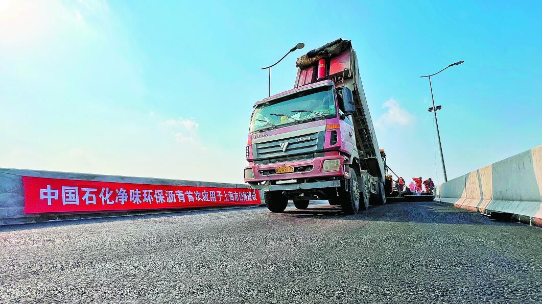 12月22日,高桥石化首批次150吨净味沥青应用于上海市政道路建设。此前,该沥青应用于公司厂区路段后,效果良好,高桥石化与炼油销售公司积极开拓市场,寻找具有示范作用的工程项目。此次沥青铺设于上海虹桥机场交通枢纽高架路段,有效减少施工过程中的异味。图为施工人员铺设净味沥青。徐峥辉摄
