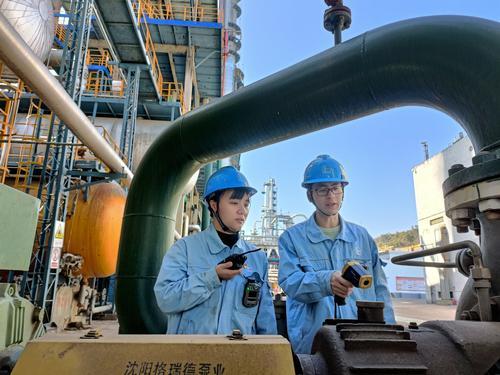 近日,荆门石化对3号催化装置、3号气分装置的生产运行进行联合优化调整,通过降低加热温度、提高热源温度的方法,3号气分装置蒸汽消耗减少21吨/小时。图为炼油一部技术人员核对3号气分装置流量计数据。蒲红霞摄杜虹波文