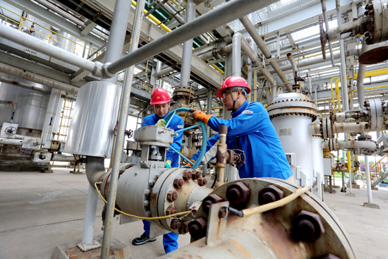 员工严密监控系统运行参数,保障新产品稳定生产。赵旭东 摄