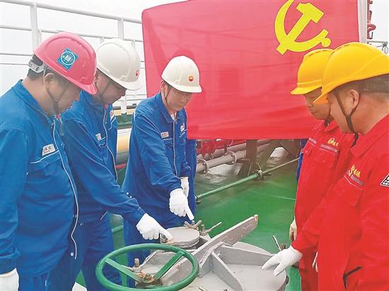 大连石化党员和船方党员开展对标交流。 郭炬 摄