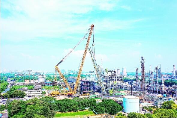 8月10日,由南京工程公司承建的金陵石化煤化工净化装置技术改造项目吸收塔成功吊装就位。作为金陵石化2023年度重点工程,该项目建成后将进一步提升净化效果、降低装置能耗。此次作业是金陵石化历史上规模最大的一次吊装作业,他们通过采取逐项核算载荷参数、构建3D模型模拟、做好场地换填和地基处理等措施,确保了高96米、重675吨的塔器安稳就位。图为吊装现场。罗涛摄陈伟伟
