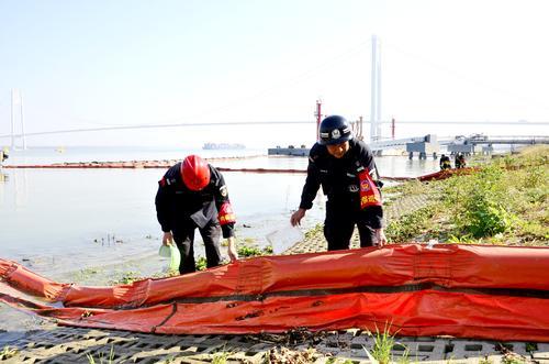 今年以来,金陵石化实施码头作业水体风险防控等20个项目,常态化开展长江岸线专项排查,推动长江生态修复和环境治理,年回用废水2500万吨,减少新鲜水取用,相当于节约4个南京玄武湖的水量,有效助力长江水体保护。图为10月31日该公司员工在长江码头对隔油栏进行例行检查。曾敏摄陈伟伟文