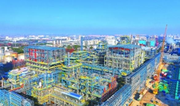 1月2日,全球单体产能最大PTA项目——仪征化纤年产300万吨PTA项目首条生产线中交,标志项目由工程建设逐步转向生产准备和试生产阶段。该项目空压和氧化区域共有两条生产线,此次中交的是其中之一。图为项目建设现场。