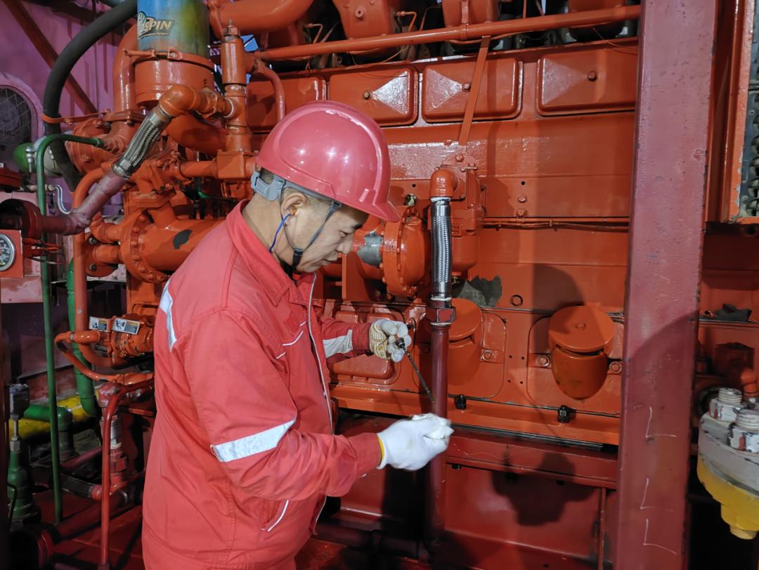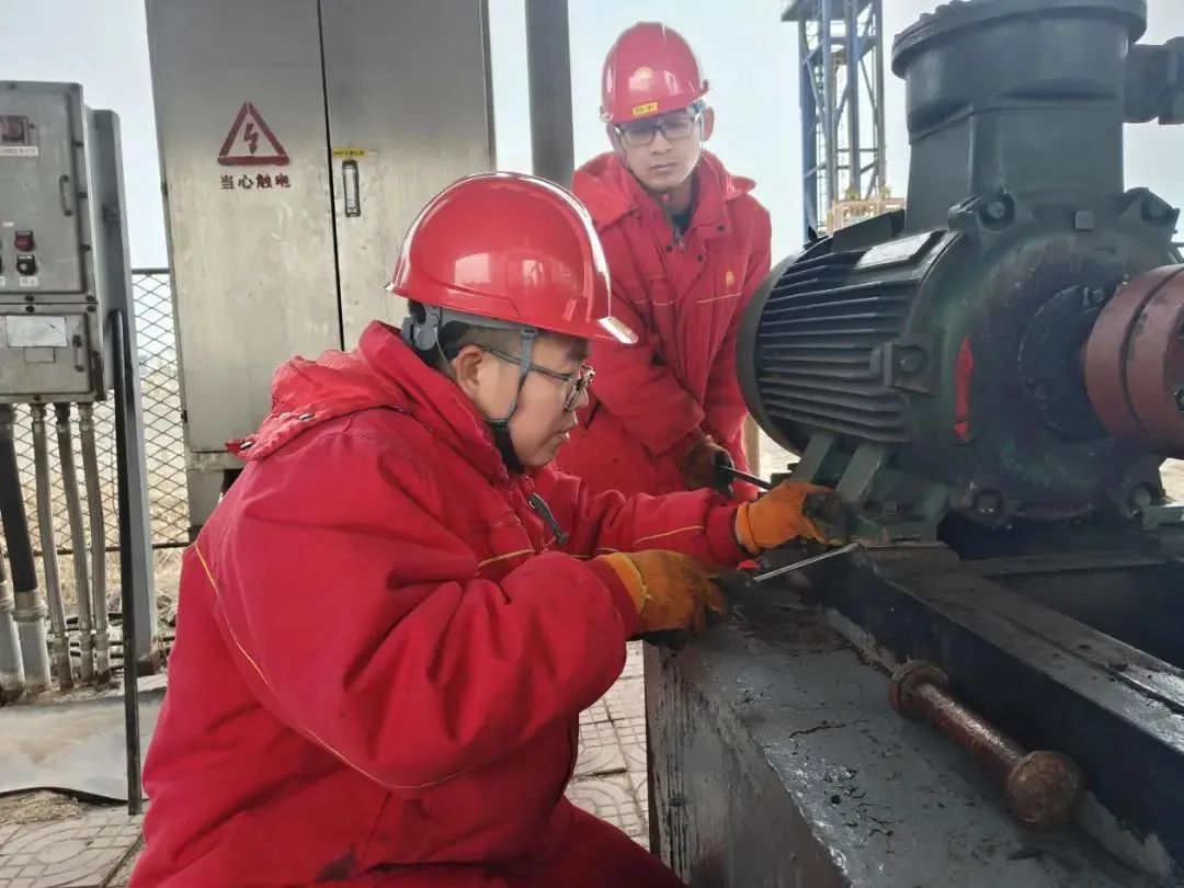 冀东油田南堡第五工区集输班组员工一大早就来到集输区现场,抓紧对回注喂水泵进行自主维修,以确保设备完好备用。