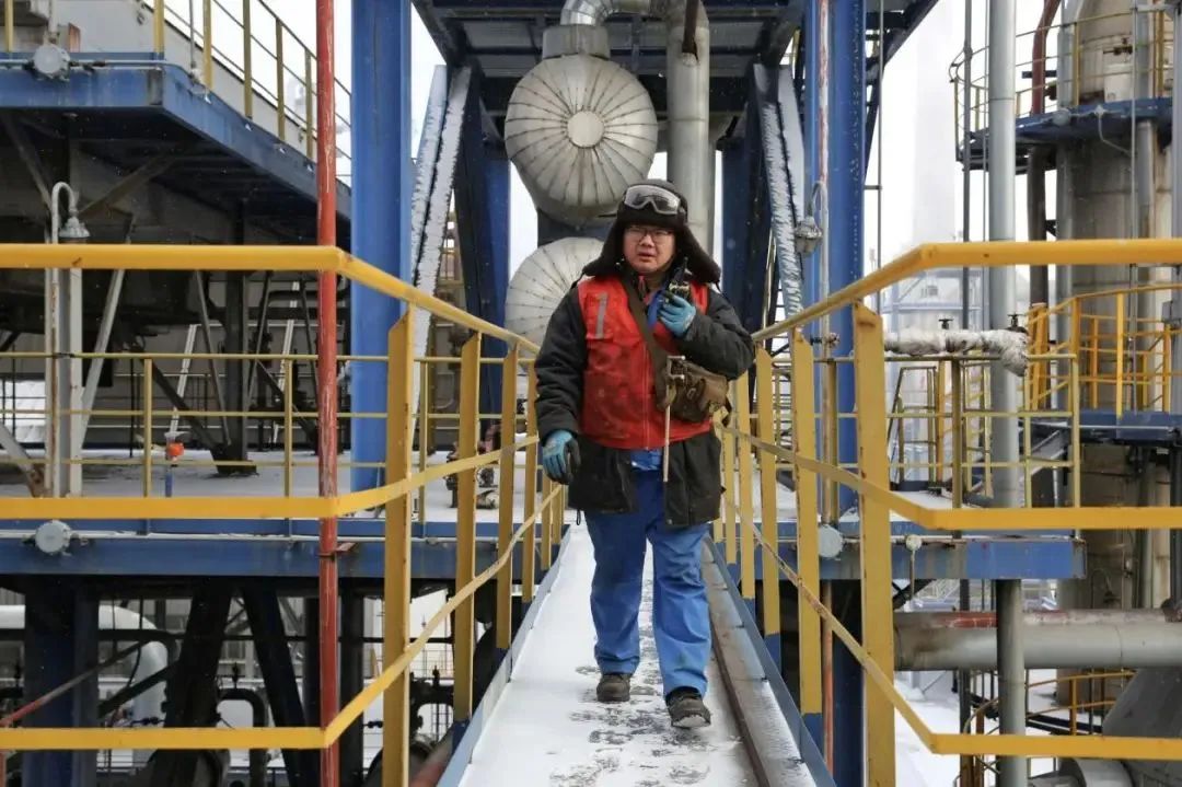开工第一天,一场寒潮过后的乌鲁木齐气温降至-24℃。在乌鲁木齐石化芳烃部装置现场,运行四班催化重整外操人员正在进行接班后的第一班巡检,仔细检查A-2201湿式空冷运行状态,及时向主操反馈巡检情况,确保生产安全平稳。