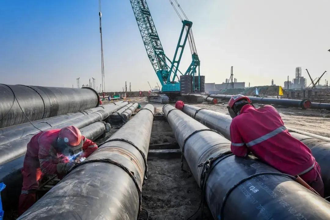 广西石化炼化一体化转型升级项目建设施工现场,塔吊高耸、各种型号的吊机不停起吊材料,焊花飞舞、施工人员紧张有序进行焊接,车辆接连不断、运送各种工程材料,一派热火朝天的景象。各参建单位铆足干劲,争取在雨季前完成地下工程,为早日实现无土化安装目标创造条件。