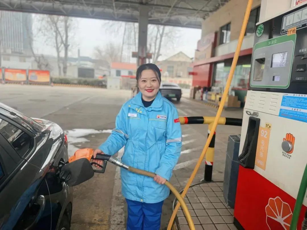 山东销售济南分公司凤凰路加油站员工正微笑着服务进站的每一位客户,用始终如一的优质服务认真为每辆车加油。