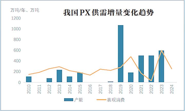2024年,我国PX产业链整体扩能速度放缓,全行业处于调整缓和阶段,因上下游供需错配继续存在,上游缺口再度放大,下游仍过剩严重,且伴随终端纺织服装南移加快,加大了国内聚酯原料的出口。总体来看,产业链已从周期低谷触底回升。