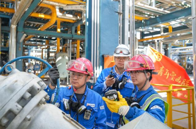 [中国石油新闻中心2024-05-06]云南石化炼油二部青年突击队16名员工危急时刻冲在前、干在前,完成了PSA2吸附塔D抢修作业、渣油加氢换剂抢修等30多项急难险重作业,被称为抢修“急先锋”。他们秉承“创新不怕小、创效不怕少”的理念,积极参与“PSA1装置高负荷下产品及能耗优化调整”等多个攻关项目,其中“大数据提前诊断装置异常”项目获得2023年集团公司创新大赛三等奖。图为4月12日,炼油二部青年突击队成员认真监护渣油加氢装置换剂检修。