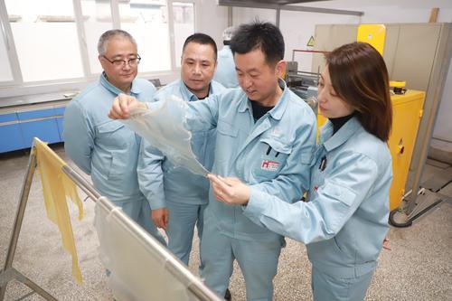团队成员研究可氯化聚氯乙烯树脂产品的耐热、阻燃等性能。李建强 摄