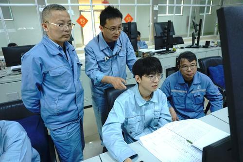 上海石化碳纤维事业部持续强化新员工专业技能培训,为员工量身定制培训带教计划和培训方案,并通过实操带教、不定期抽问和定期测评等形式,帮助新员工提升技能水平,快速适应岗位需求。图为5月18日,在实操带教老师的指导下,纤维部新员工进行现场技术问答。王雪飞 摄