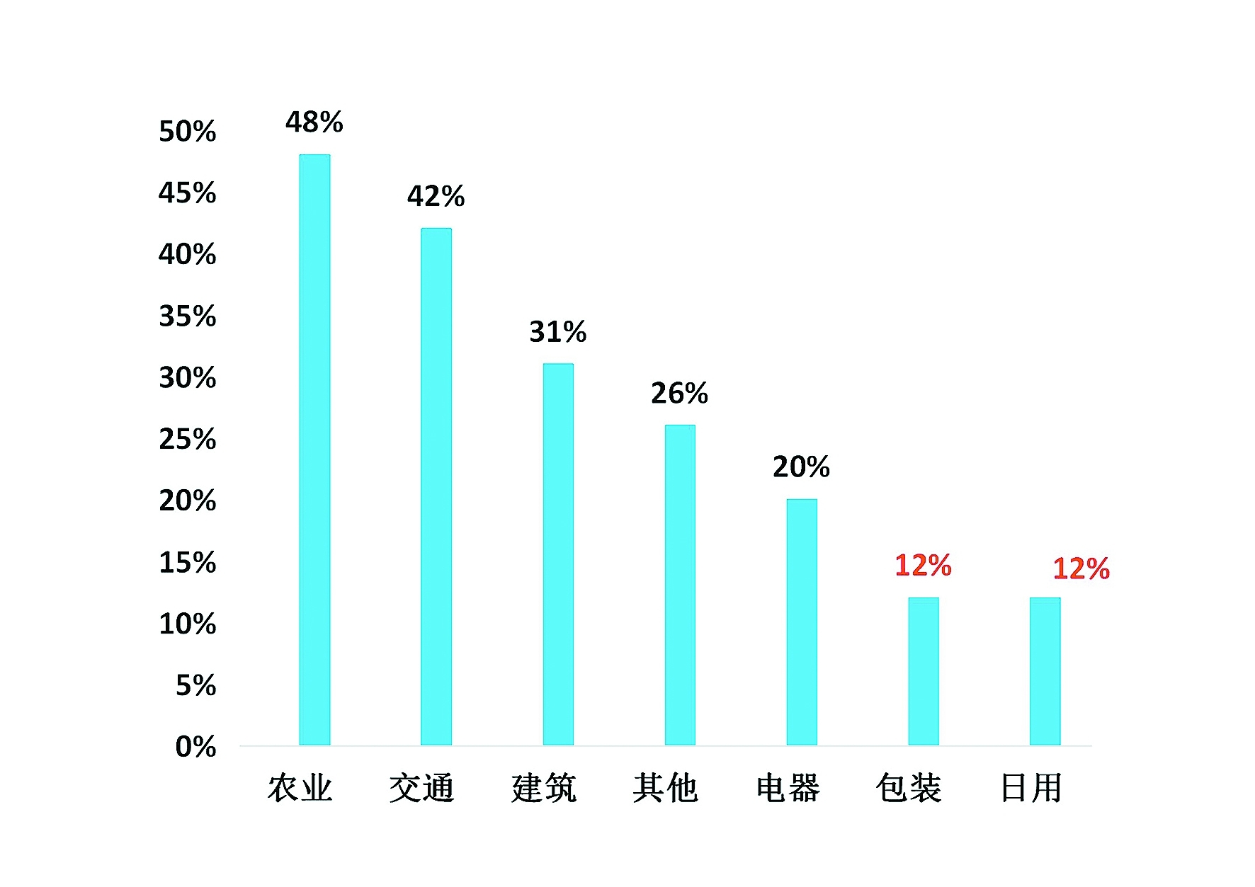 我国各行业塑料包装回收率