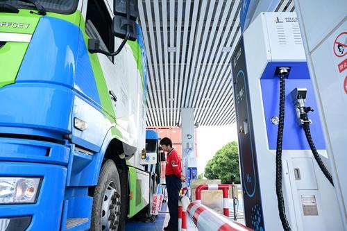 今年以来,浙江石油紧抓长三角氢能一体化产业链发展窗口期,推动氢能在公交、物流等领域应用,截至6月6日,氢气销量同比增长51%。图为浙江嘉兴石油平湖滨海大道加氢站为氢能重卡加氢。沈志军摄张耀文金丹红文