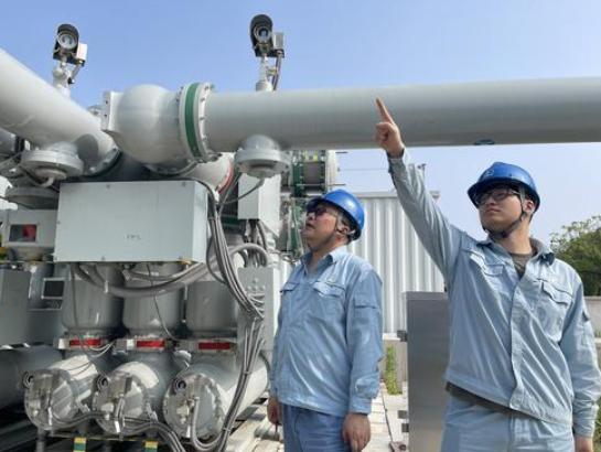 近日,上海石化热电部220千伏GIS(六氟化硫密封式组合电器)电气系统改造工作顺利完成,将大幅提升电气系统运行效率和安全性能。该公司加强领导干部带班制度,积极开展“操作回头看”活动,实现所有操作零差错,为成功实施改造项目提供保障。图为运行人员对GIS设备进行巡检。