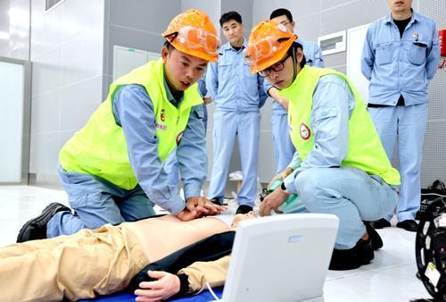 6月25日,镇海炼化第八届“最强操作”竞赛应急比赛拉开帷幕,来自镇海基地的23家单位全部参加比赛。比赛设桌面推演和应急实操两类,旨在提高员工应急处理水平。图为选手进行双人心肺复苏比赛。何 雯 摄