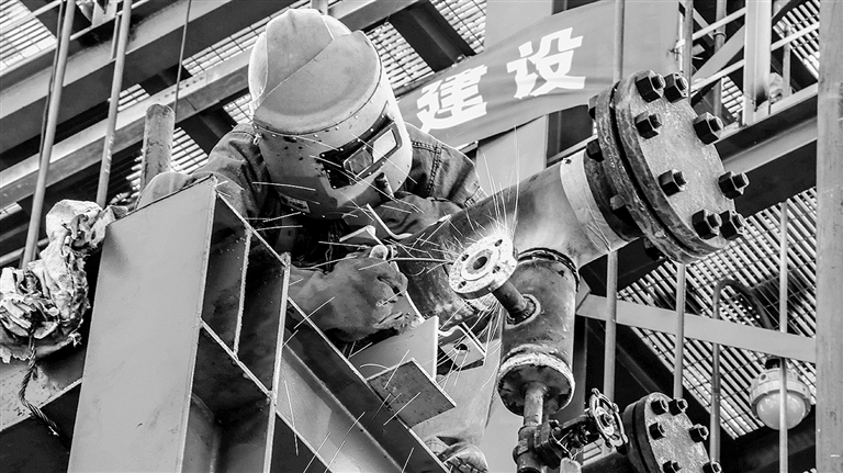 ③检修人员焊接框架。
