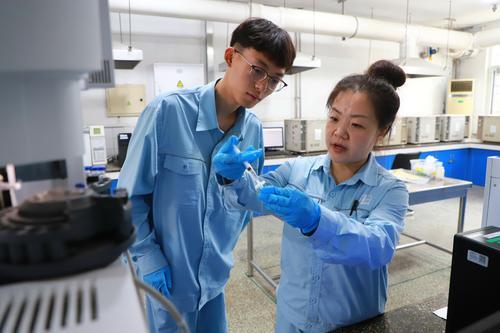 齐鲁石化检验计量中心橡胶化验室采取导师带徒的方式,持续强化新入职员工基本功训练,并为其量身定制学习规划,定期进行理论与实操考试,推动其全面掌握分析操作技能。图为7月26日,化验员高慧(右)向徒弟边春瑞传授水胶粒中氯苯含量的分析方法。李建强 摄