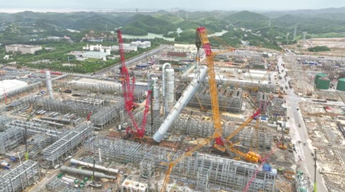 8月2日,广西石化炼化一体化转型升级项目最大、最重塔器——120万吨/年乙烯2号丙烯塔,历时2小时43分钟成功吊装到位。此次吊装荷载达2180吨。这标志着由工程建设公司承担的3台千吨级以上塔器吊装任务圆满完成。该塔器由工程建设公司七建公司制造,高103.8米,最大直径8.8米。广西石化炼化一体化转型升级项目是中国石油落实国家“一带一路”倡议、建设西部陆海新通道、推进炼化业务高质量发展的重大项目,也是中国石油推动“减油增化”调结构的战略性项目。该项目建成投产后,可助力广西石化由燃料型向化工产品及有机材料型转变,推动炼化业务向绿色低碳转型。